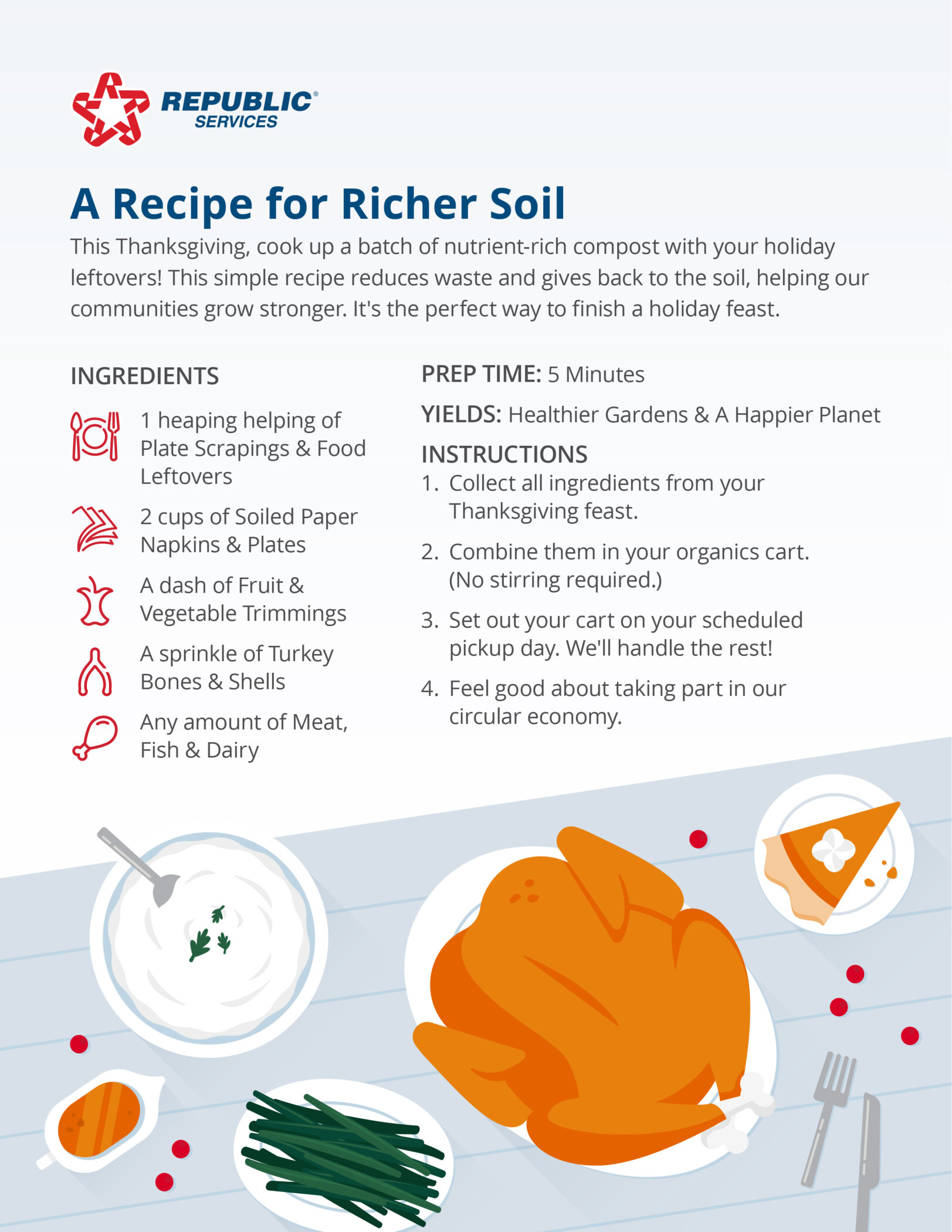 This Thanksgiving, cook up a batch of nutrient-rich compost with your holiday leftovers! This simple recipe reduces waste and gives back to the soil, helping our communities grow stronger. It's the perfect way to finish a holiday feast.