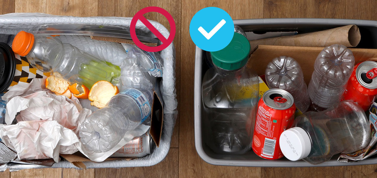 - Empty, clean and dry. These are the three magic words of recycling. Every item in your recycling bin should be free of liquid and food residue (think ketchup bottles). When items are soiled, they can contaminate other perfectly good recyclables (think paper), and those contaminated materials will end up in the landfill. Give your recyclable containers a rinse, then tap out the excess water, leaving no more than a teaspoon.
